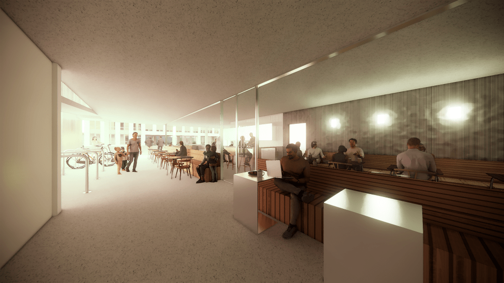 This proposal sacrificed potential additional residential units for community amenities, which provide opportunities for work, recreation, and both formal and informal gatherings. The adjacency between co-working and play space is specifically beneficial for parents who work remotely, providing a hybrid space in which they can address professional obligations while minding their young kids if/when childcare is not available.